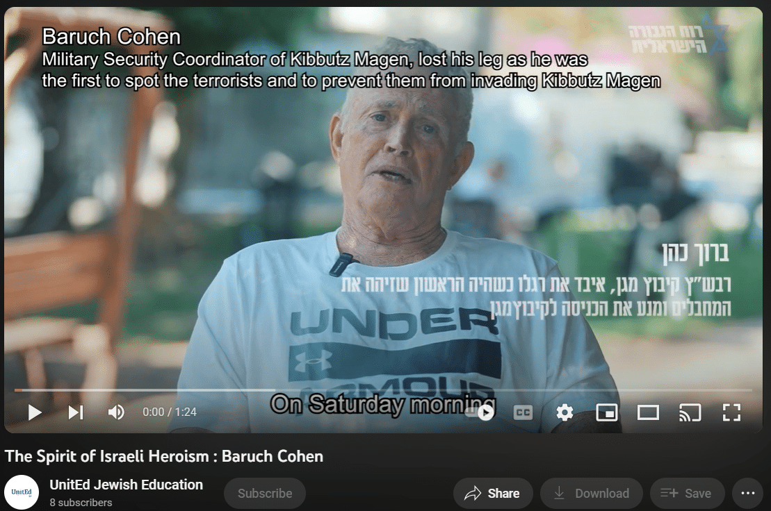 Before discussing the heroism found in the Chanukah story, the teacher should introduce the lesson by showing the following clip of Baruch Cohen who fought to protect his kibbutz Magen located in the Gaza Envelope that was part of the Oct 7th Massacre.