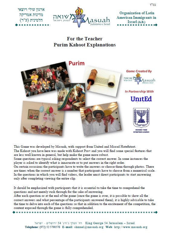 Purim Kahoot Explanations for the Teacher: